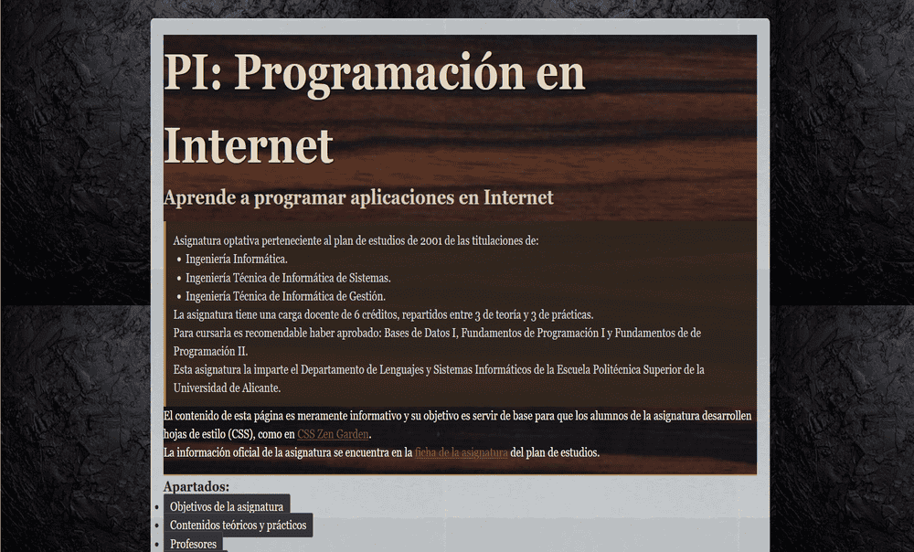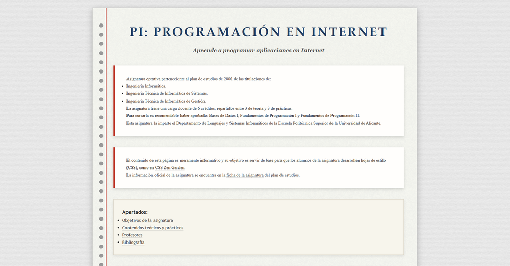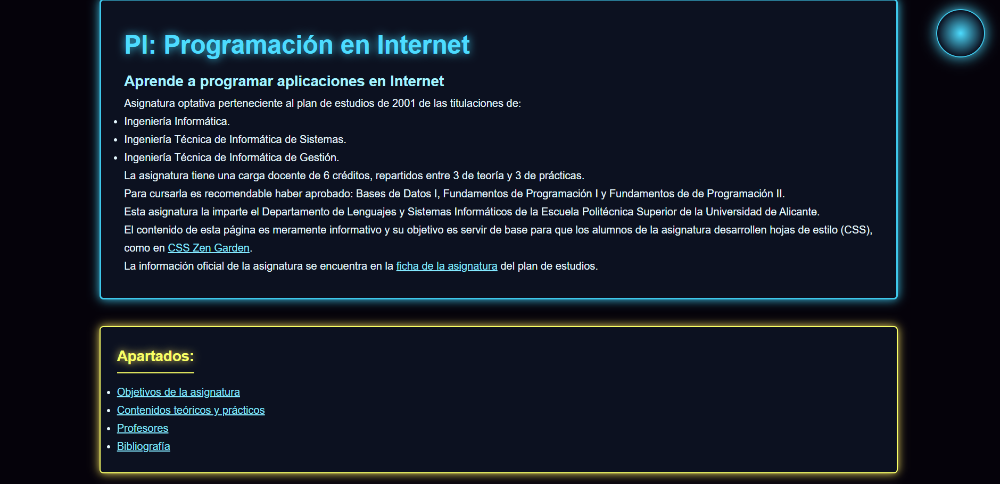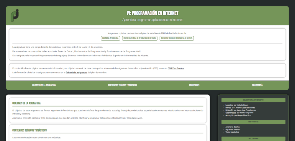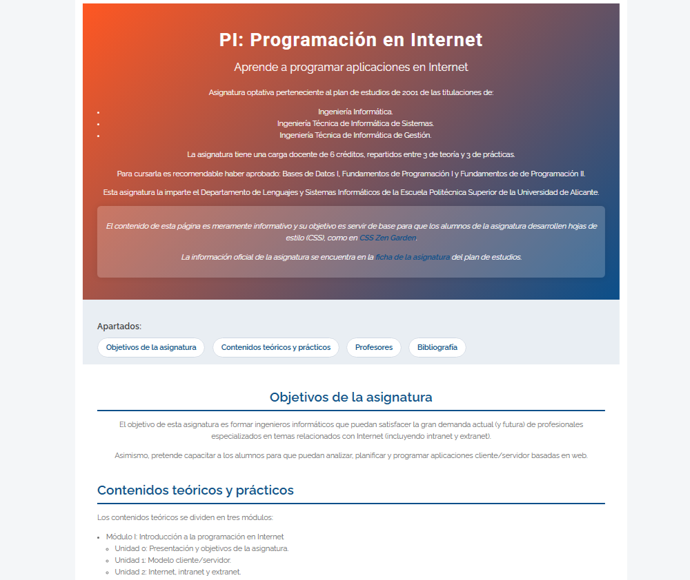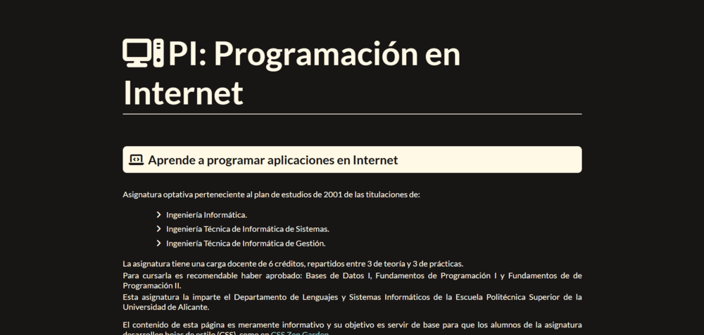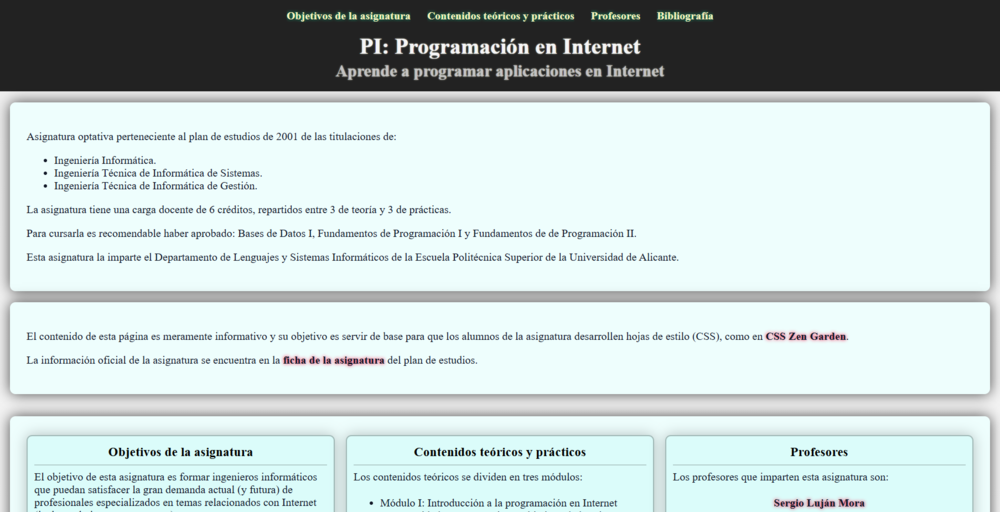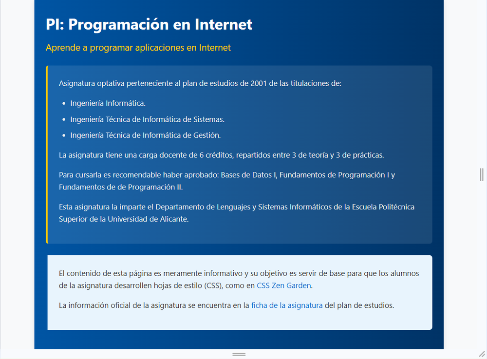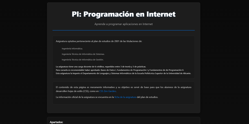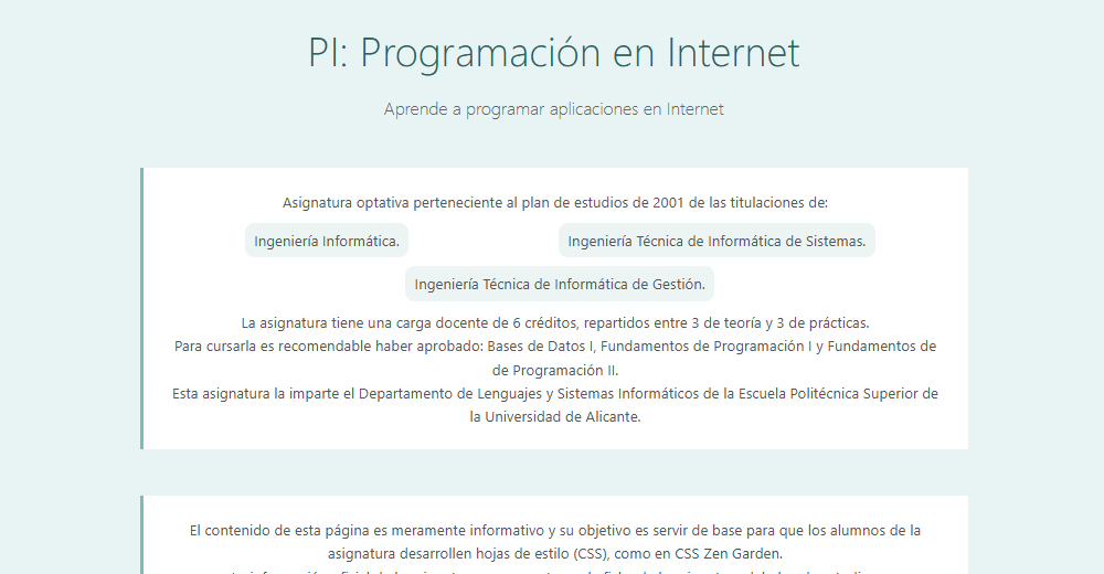 Estilos para la página web PI: Programación en Internet por Alexandre Diego Martínez