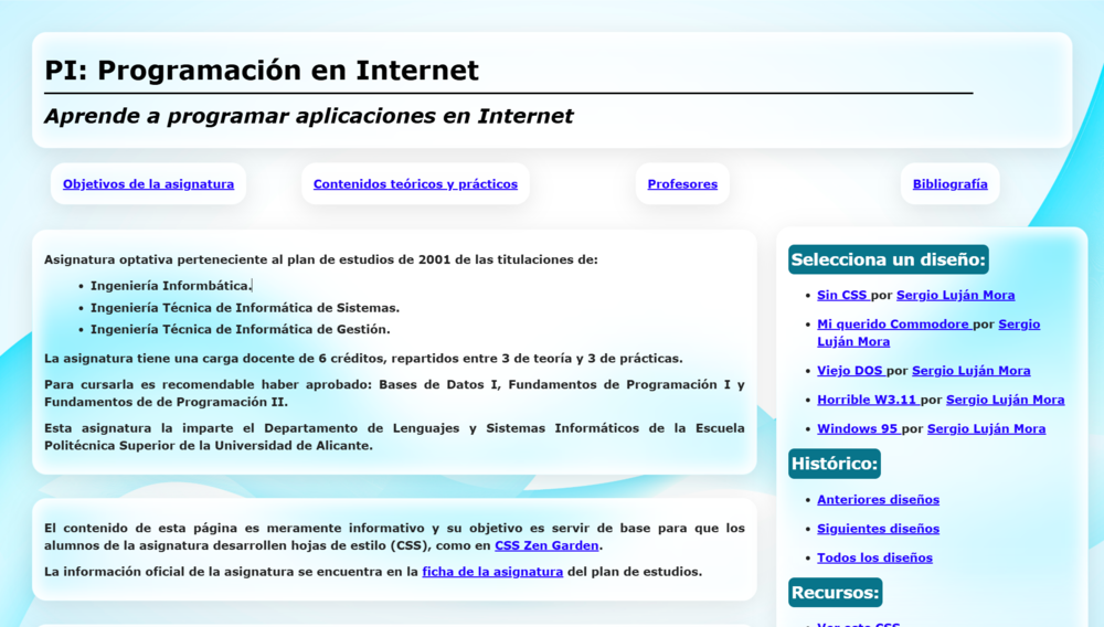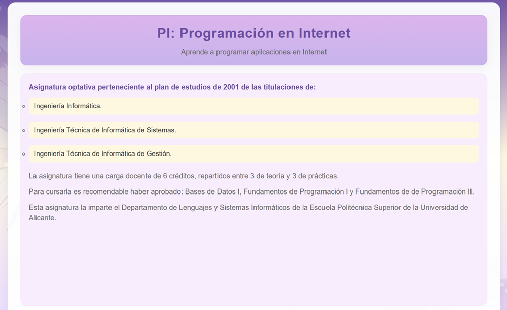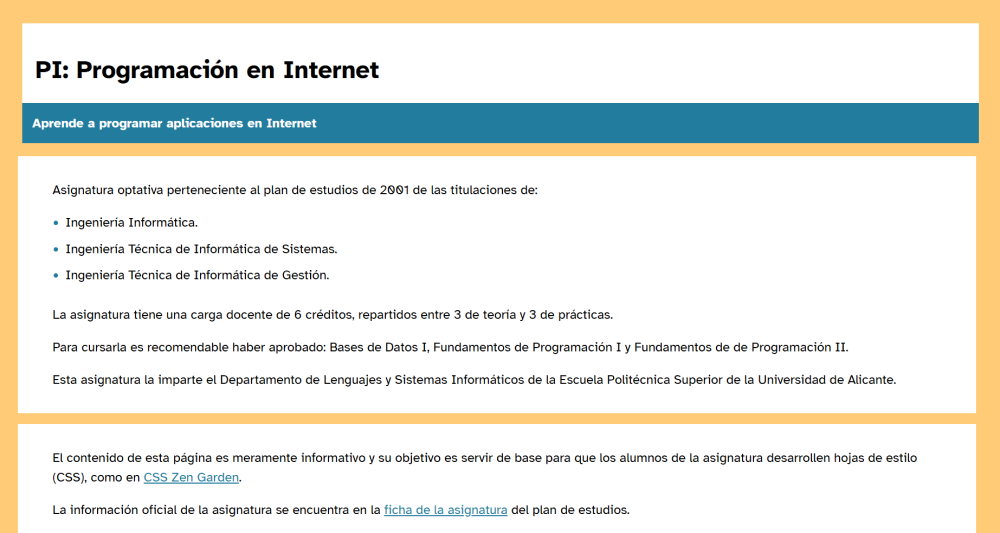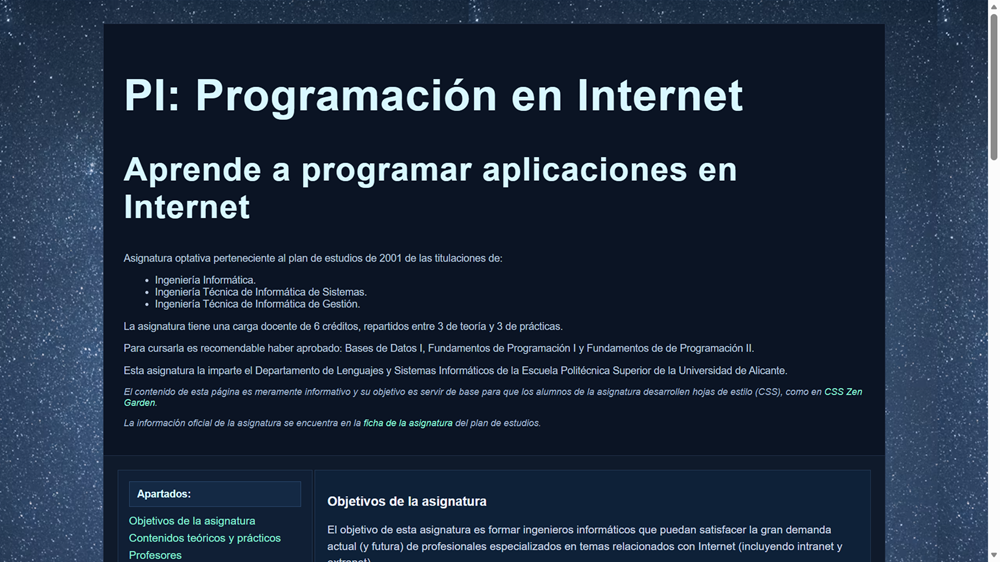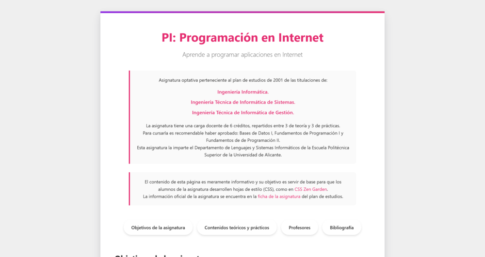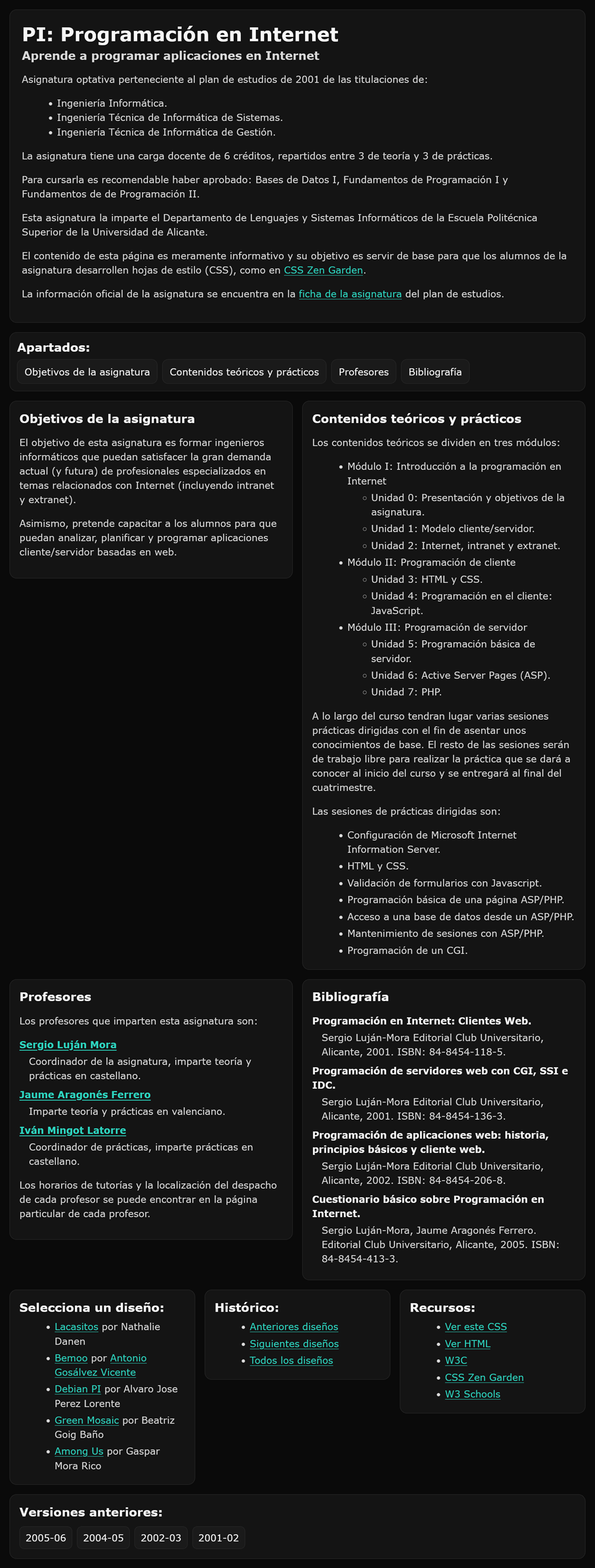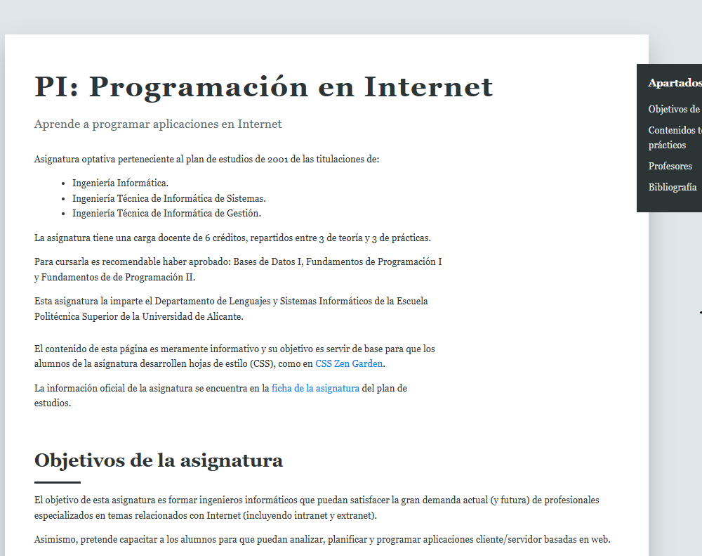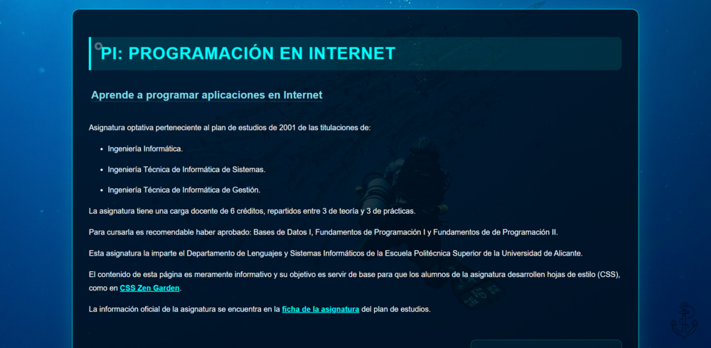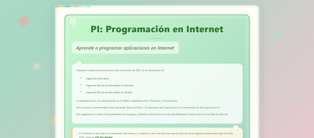 Estilos para la página web PI: Programación en Internet por Alexandre Diego Martínez