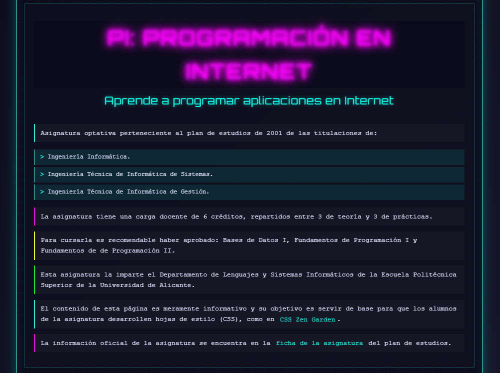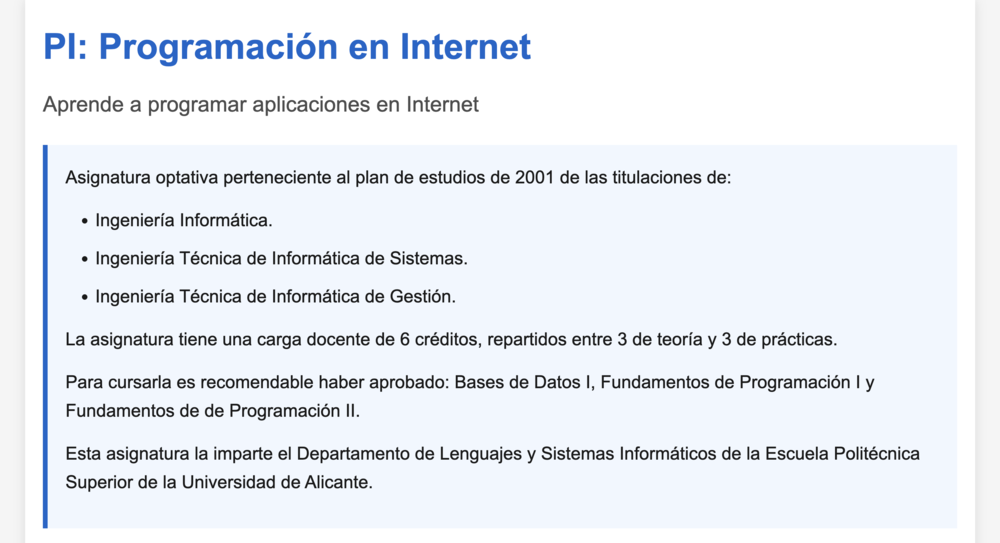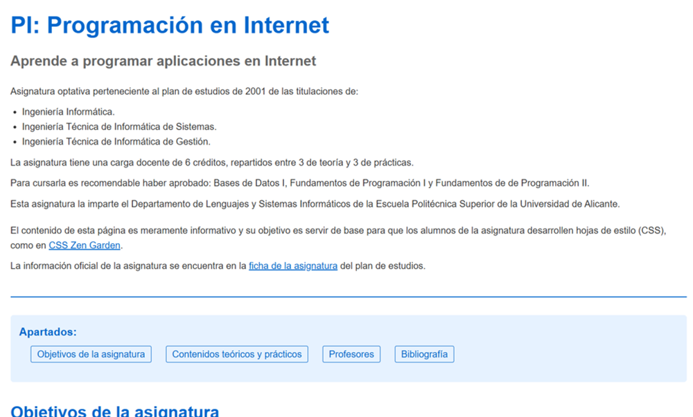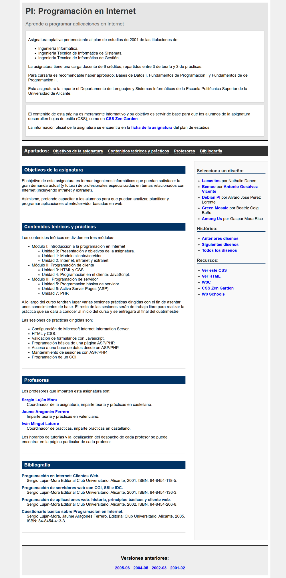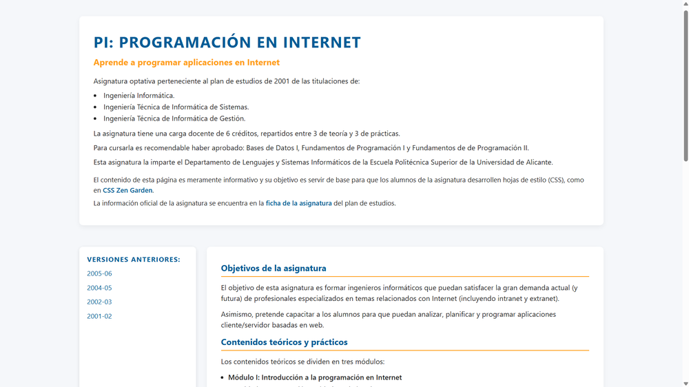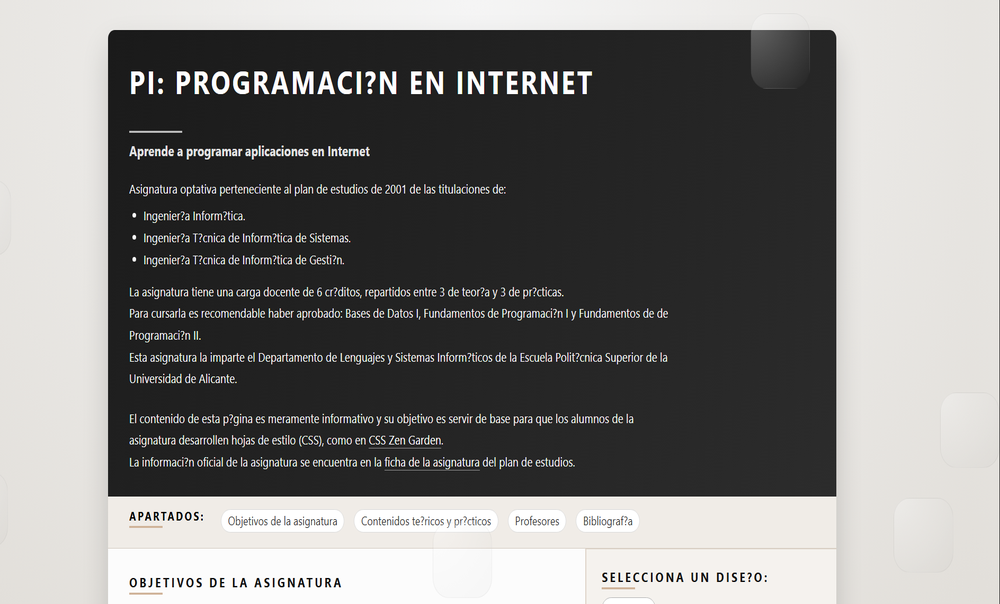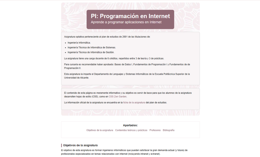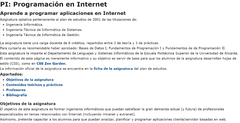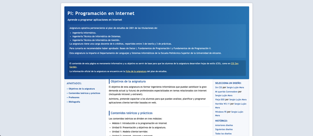 Estilos para la página web PI: Programación en Internet por Alexandre Diego Martínez